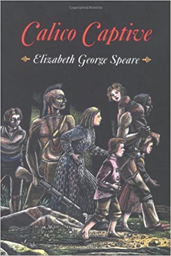 Calico Captive is a middle grades historical fiction novel by Elizabeth George Speare. Written in the 1950s, it takes place in the 1750s during the French and Indian War. It is based on an actual journal of a woman who was abducted by Native Americans from her home in New Hampshire with her family. The family was then largely later sold to the French in Montreal, piece-meal, and then reunited after months (or years) of imprisonment. The novel is told from the perspective of the journaler’s younger sister, who is abducted with them. She is a teenager whose thoughts are on dresses, dances and a boy when she is woken in the night by screaming and is forced on a weeks-long trek through the woods, during which her sister has the fourth of her children. Miriam greatly admires the older sister who is raising her, and is unceremoniously taken from her back and forth over the rest of the story. Miriam makes enemies, makes friends, grows considerably, and changes the way she looks at the world as she struggles to regain control of her own destiny and get back home with all of her family.