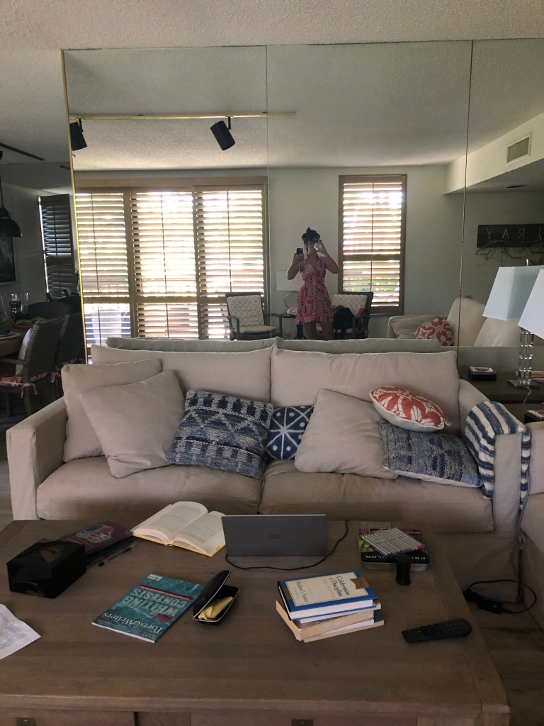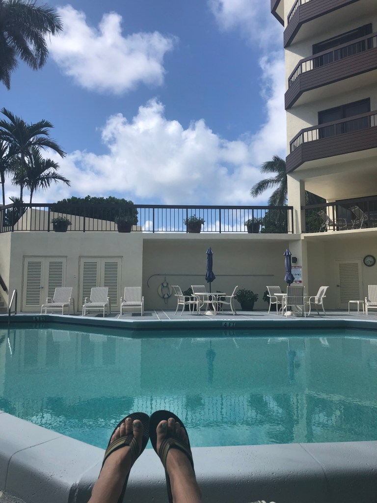 There was this whole confusion with the fellowship, too, but it turns out they liked the writing I submitted (reminded them of Anne Tyler) and also the essay I wrote about being a parent writer. The bummer was when I found out that the Martha’s Vineyard Institute of Creative Writing Conference was not going to take place in Martha’s Vineyard due to the darn pandemic. Nope, it was going to be virtual. Erg. First conference, ever. First time at Martha’s Vineyard, ever. First time being a fellow, ever. Aaaand go figure out a way to be secluded for the week, just make sure you have WiFi. You can make friends from thousands of miles away, right? I put out a social media message asking friends and family if they happened to have a spare house or apartment that I could stay in for a week without interruption. My mother-in-law almost immediately responded by connecting me to my husband’s aunt and uncle and their condo in Delray Beach, Florida. Honestly, I had my doubts because it seemed too good to be true. As is often true in life, I needn’t have worried.
