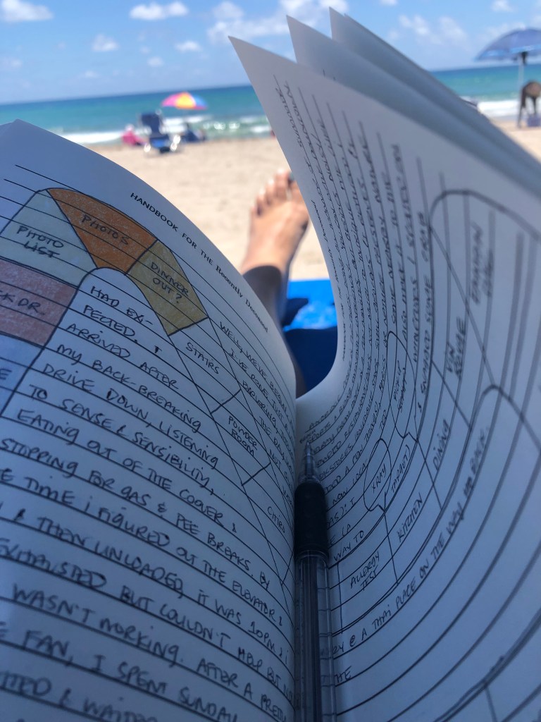 Day eight: Sure, the conference had ended for most attendees, though there were still connections to made on Whova. But I was now looking windswept and pallid, staring down a temporarily-bachelorette living room strewn with wine glasses, hair ties, deserted books, a pile of bright, dirty sundresses, and a settled tornado of papers. Mostly, this tornado was as virtual as the conference itself, trapped on the jaundiced screen of my laptop. There was a literal storm brewing for the afternoon, so I made myself put on a bathing suit and enjoy an entire morning laying on a lounge under an umbrella, people-watching, reading about writing from Ray Bradbury (who just loves it), stretching my sandy toes into the sun, feeling the warm breeze on my face, tripping into the waves behind old women in shower caps doing the backstroke, and sinking down into the froth hoping the gators and sharks would see the old ladies first. In the afternoon, I cleaned up after myself, packed, but mostly spent time with all the notes and files I had acquired over five days of intense instruction and workshopping. I actually didn’t even finish, but I began to make notes on my notes, to-do lists, to-buy lists even, organizing bits and pieces of existing and new ideas, stories, and even poems. I’ll have months of things to do, just from this one week of infilling.