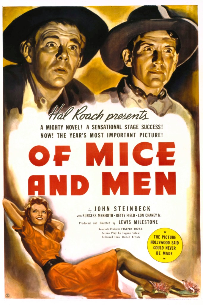 I was at home “cleaning” when I finished Of Mice and Men so I found the time to watch both of the movies that were readily available. The first one was the black and white 1939 version. Welp, I don’t appreciate movies that old, hardly ever. I can’t get over the whole we-haven’t-figure-out-cinema-isn’t-the-theater-yet thing. The acting is so goofy, the framing, the lighting, everything like we’re still looking at a stage and everything’s transient and distant. It does stick pretty close to the book (except for some anachronisms, perhaps in dress and accent the most). It gets the point across. It gets pretty good reviews. Being from a certain time and place it attempted to white-wash much of Steinbeck’s “realism,” but not all of it. Not really my cup of tea. I would rather watch the 1992 version, which was directed by and starring Gary Sinise who was upstaged by his casting of John Malkovich as Lennie. I was nervous for the actors in this updated, color portrayal of an old—and always terribly sad—story, but they really did an excellent job. I saw some complaints that the movie was too beautiful and had too much happiness in it, but it was the only one out of the three that made me sob at the end. Yes, after I had just seen the same dang, awful scene two other times. I think there’s something about movies as opposed to books: well, don’t be mad at me because I will take a great book over a great movie any day but sometimes books put a certain distance between reality and the character and then movies come in and it all looks so real and believable and that distance between the characters and reality melts away. That happened for me in the 1992 Of Mice and Men. It’s like the novella and the other movie had been a tragic study in human nature and history and then seeing Malkovich and Sinise on the screen with the farm and other characters in color and movement brought the whole thing alive for me. When the horrible ending came, it was more affecting. Obviously, I would recommend that you watch a movie after reading the book (if you can take it), and that version would be the 1992 one. In fact, it’s a good movie (minus a couple, small missteps) all it’s own, but so. sad. So…
