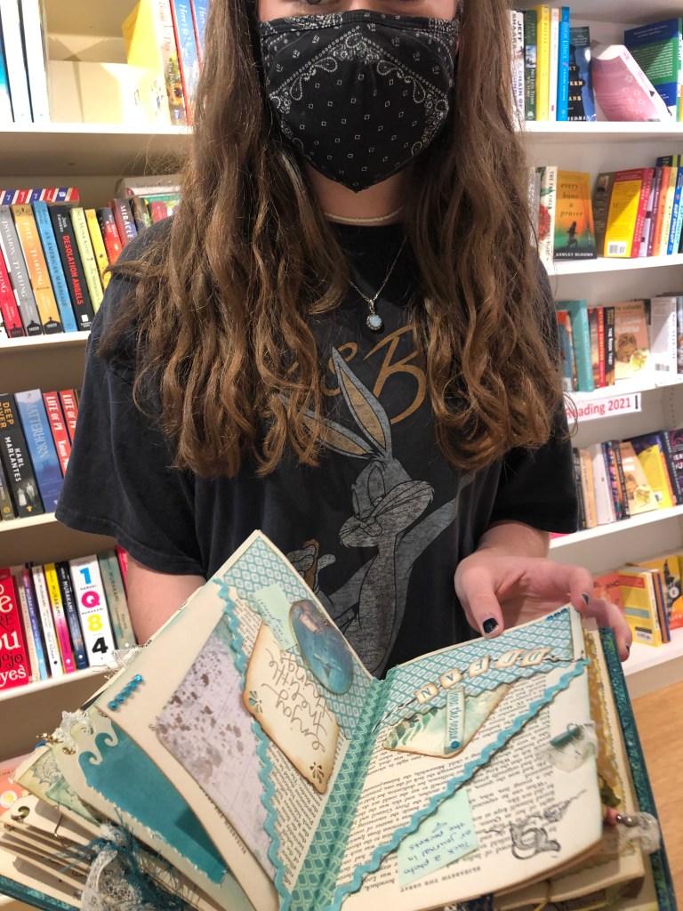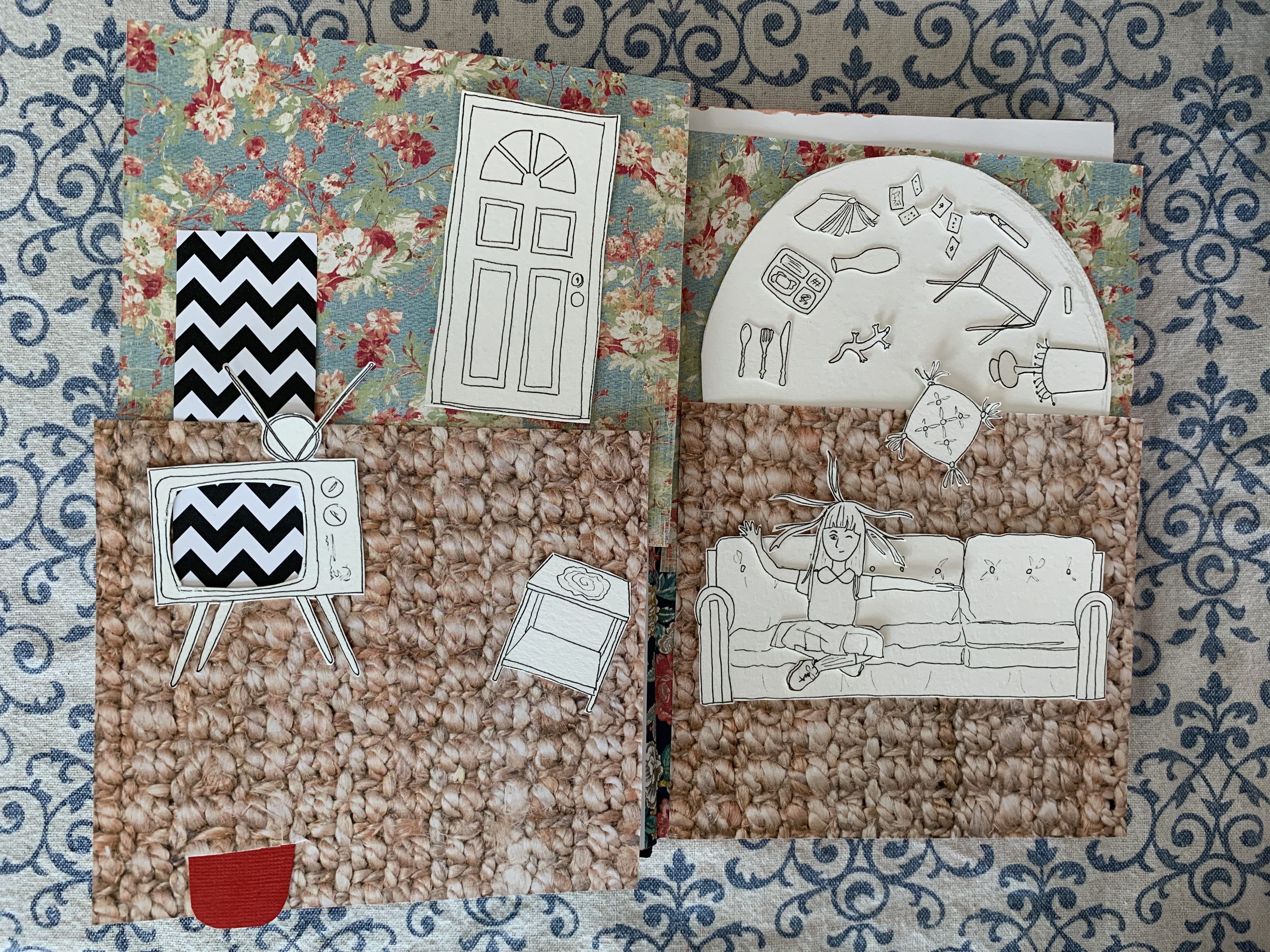 Lo and behold, the pandemic has taught me something and darned if I am not actually doing the altered book project with my students. After doing some basic sketching and contour drawing in class, while diving into charcoal and ink-with-watercolor, I set them their weekly tasks of finding the right sort of book, ripping it up, repairing it, etc. This week we are all supposed to be doing out first page(s) of our themed books. My theme is “Heroines of Juvenile Fiction” and my first page (which is done, actually) is Matilda (as in Roald Dahl’s Matilda). The pull-tab makes static on the “telly” and the wheel makes things levitate around the room. I used collage and ink-with-watercolor to pull it off. (I have demanded that they give me a theme, at least ten different techniques/mediums, at least ten original drawings/paintings, and at least six interactive elements.) They are almost as enthused as I am. I have a lot of passion about some things.