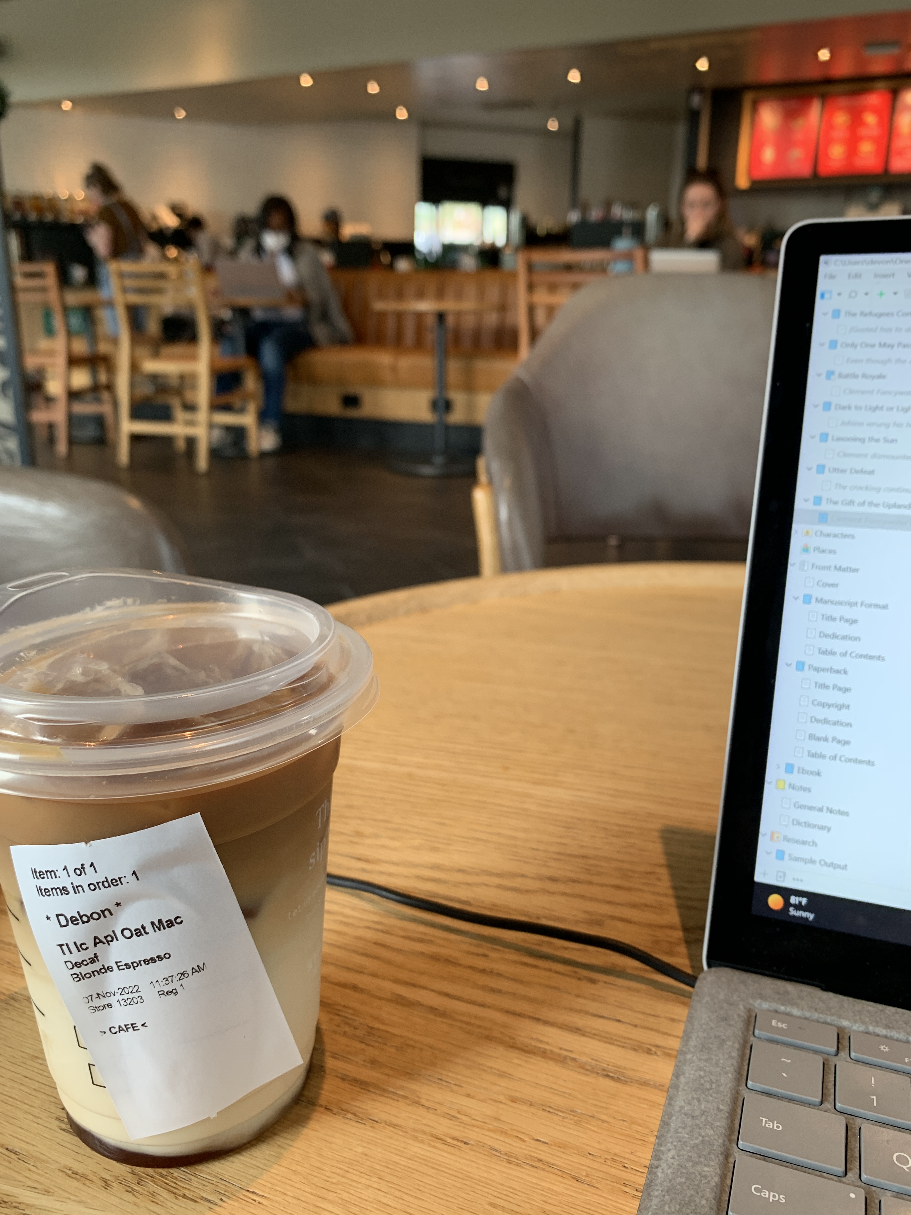 It takes an effort to accomplish Nanowrimo and to do other things besides Nanowrimo that you just can’t function without… (For me, this includes cleaning, laundry, making meals, dishes, helping kids with homework, keeping up on the college application process, random appointments like for doctors and grooming, one week singing at church, and always Thanksgiving, my daughter’s birthday, and normal hygiene. I’m sure I’m forgetting a few things. I may have stopped working out, temporarily.) Right now, my days mostly consist of getting everyone ready and sometimes going to a coffee shop or workshare and then hours writing actual words (the point of Nanowrimo) followed by hours of story-planning (keeping ahead of where I’m writing, ideally). After dinner and homework and whatever else is going on, I have been focusing on reading and viewing thematically, to keep my in the vibes and keep my brain working. (I have dotted the landscape of my house with notepads and pens, even the shower with waterproof paper and the car with a voice recorder.) I do try not to write too late because it gets difficult to switch off my story thoughts to sleep.