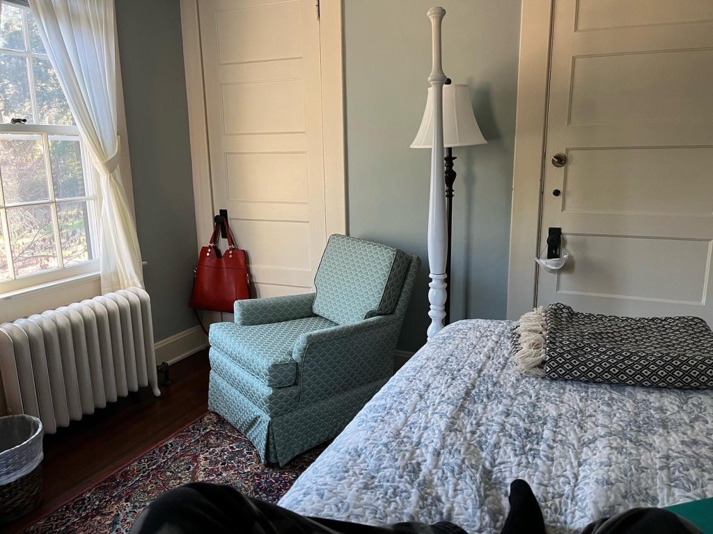 This is the first time that I have been in residence with a friend. I wasn’t actually planning on any more residencies until at least the spring, but I had a writer friend send me an email in December saying they were going to be in residence at Weymouth and if I (or one of our other writer friends) would apply for that same week and get in, that would be a nice time. So I did apply, but that week was full. I was offered the next week and took it and apparently that week wasn’t full because my friend ended up extending her stay (as did her husband, a songwriter) through my week. Huzzah! I didn’t quite know how this would work, but it turns out that, at least with Anita and Wes, this was the best of ideas. There was a lot of mutual respect for time and work but also some downtime together and even some sharing of workspaces that led to work-related conversations about everything from submissions to great books, MFA programs to character development. (There was one obnoxious hitch, which was that I was exposed—and I mean EXPOSED, like I can’t believe I didn’t get it—to Covid two days before I left, so I had to be all super-careful about eating around and being unmasked around anyone for, well, the CDC recommended 10 days at the time. If that hadn’t been the case, I probably would have also spent some meals with them and that would have been even better.)