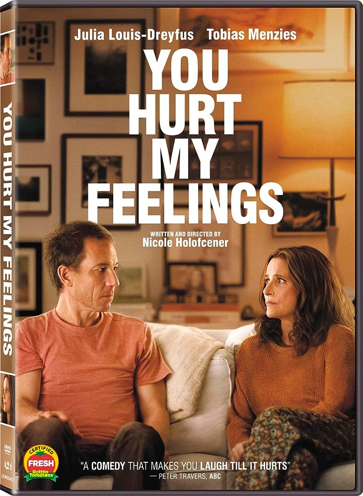 You Hurt My Feelings, starring Julia-Louise Dreyfus and Tobias Menzies, is about the marriage of a middle-aged couple. The plot revolves around Dreyfus (as Beth)’s career as a memoirist and creative writing teacher. She has been working on her first novel for some time and seems to be a bit stuck when she overhears her husband (Menzies as Don) giving his “real” opinion about her writing to his bestie. Obviously, the opinion is not only unfavorable, but in contrast to what he has told her for years. This throws Beth into both a career-downward spiral and a marriage-downward spiral. She confronts. She questions. She mopes around. But we discover, quickly, that this movie isn’t about writing at all. It’s about marriage. It’s about endurance in relationships. It’s about giving your loved ones some space and, indeed, grace. It’s about the dysthymia of getting on in years, dealing with adult children, and being sick and tired of your job—or maybe just being bad at it, about being bad at things. And it has a great, modern, tongue-in-cheek title: You Hurt My Feelings. Don’t we all?