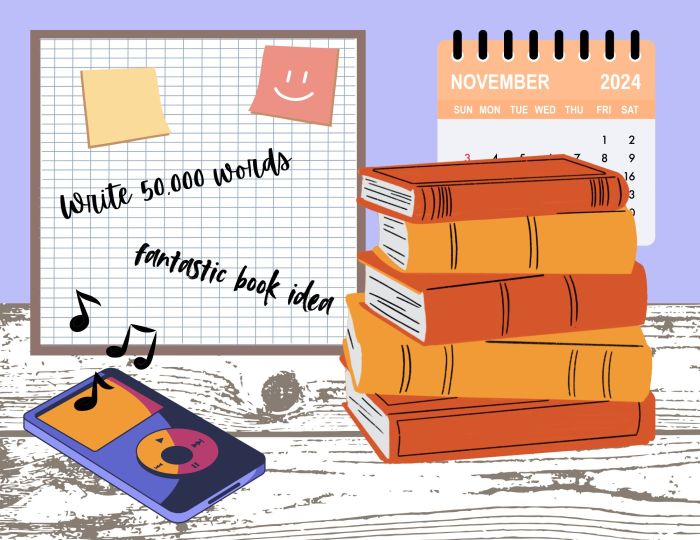 - Come up with some inspo to get you through the month, like a project playlist, a working cover, vision board, or character interviews.