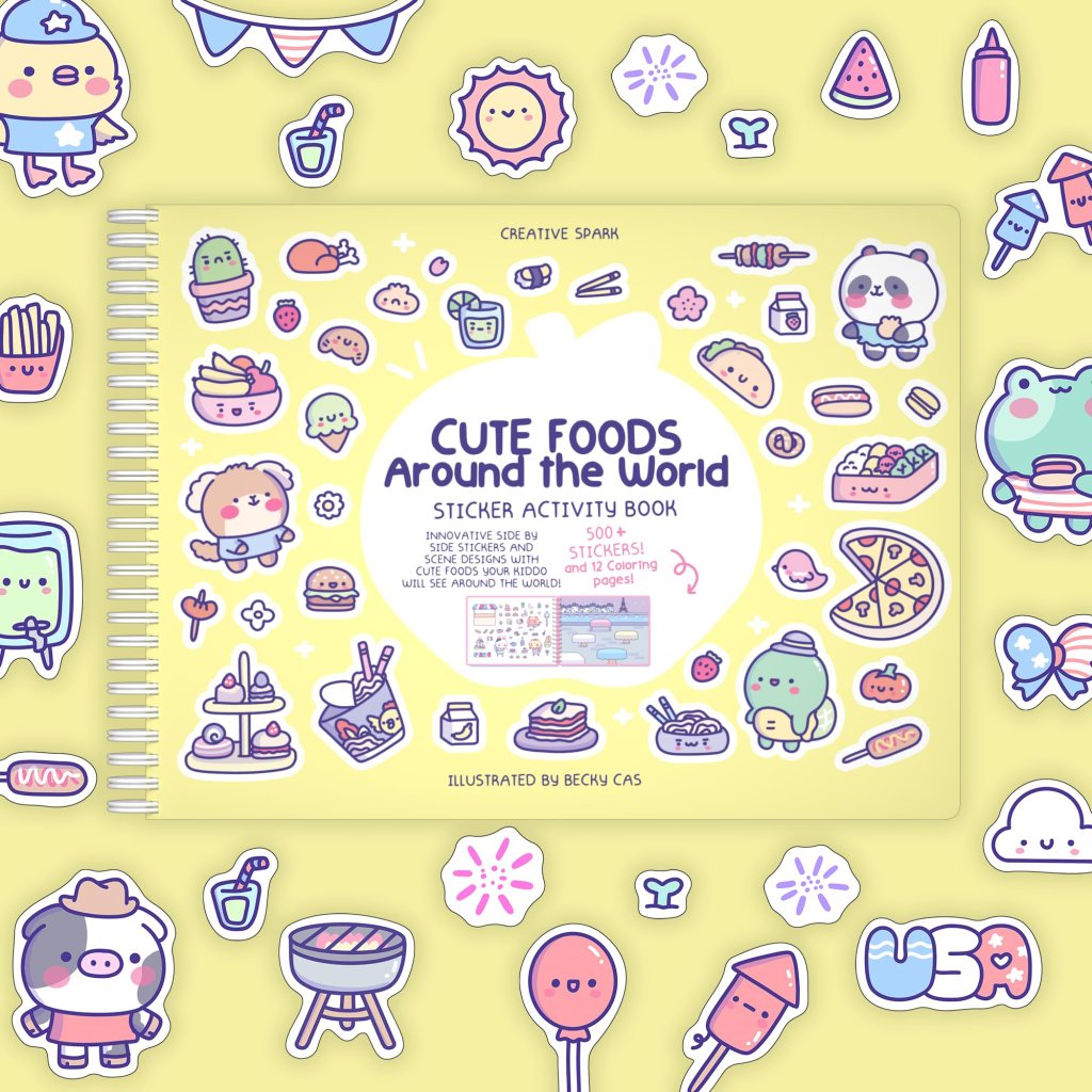 This series is a winner. It’s exactly the kind of thing I would have bought for my kids and will buy for my niece in a couple years. Cute. Ample stickers. Good quality. Different themes across the series. (I requested Foods Around the World because I’m me, but there is also Animal, Princess, All Around Town, Cars and Planes, Camping, Outer Space, Bugs, Dinosaurs, Llamas, Cats, Penguins, Fairies, Sports, Spooky Village, Holly Jolly Holiday, Axolotl, Mermaids, Museum, Snow Day, Safari, Pets, Farmers Market, and more. In the Cute series, there are Bunnies, Together with You, Pandas, Koalas, Going on a Trip, Foods Around Town, Winter Wonderland, and more.) Three of the books are illustrated by Becky Cas, an illustrator out of Switzerland who illustrated the one we got.