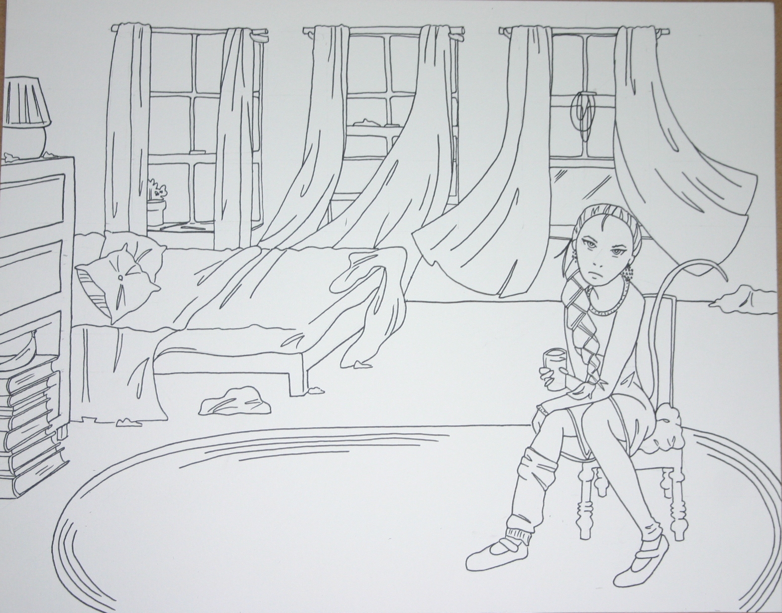 Peter moved forward and leaned on the door frame, the door only partly concealing him in its shadows. June picked up an discarded blouse from a messy chair and threw it a few feet at the girl’s head. She startled and jumped around to face June.
